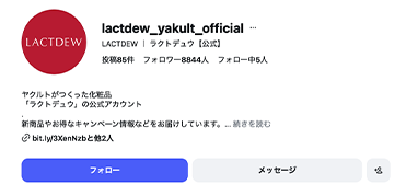 - 1.インスタグラムからラクトデュウ【公式】アカウント(@lactdew_yakult_official)をフォローしてください。