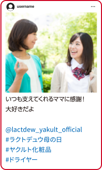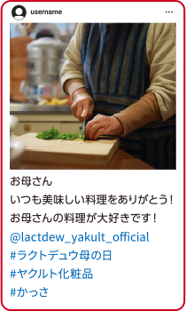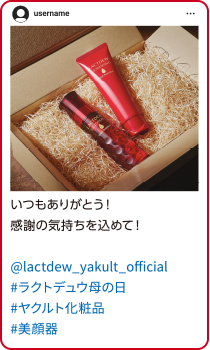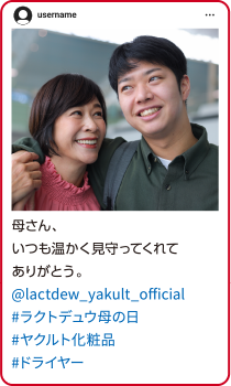 指定ハッシュタグ:「#ラクトデュウ母の日」「#ヤクルト化粧品」