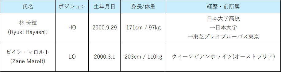 この度、以下の選手がチームに加入しましたのでお知らせします。