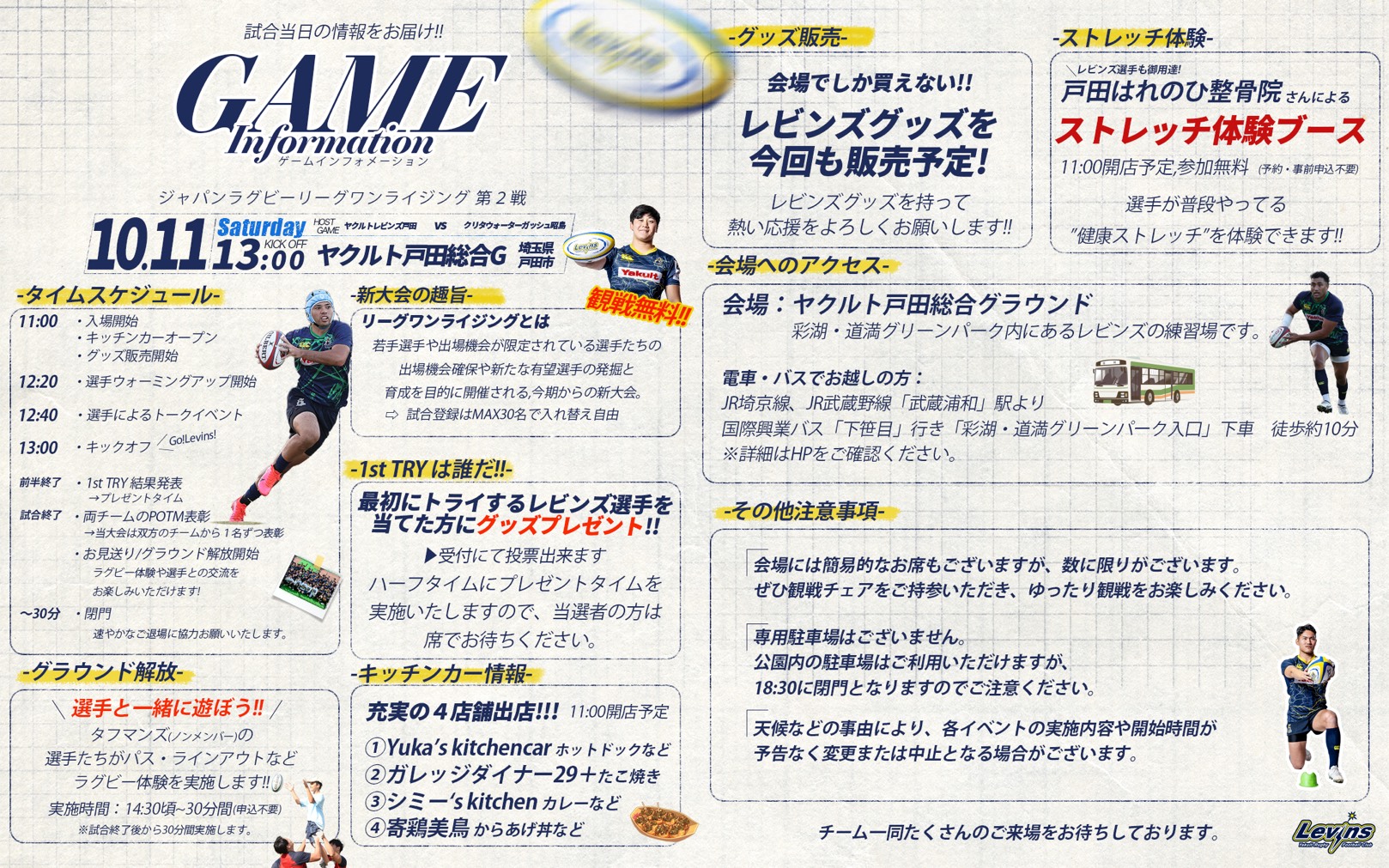 ※10月8日更新:ジャパンラグビー リーグワン ライジング 2025 試合情報について(10/11)