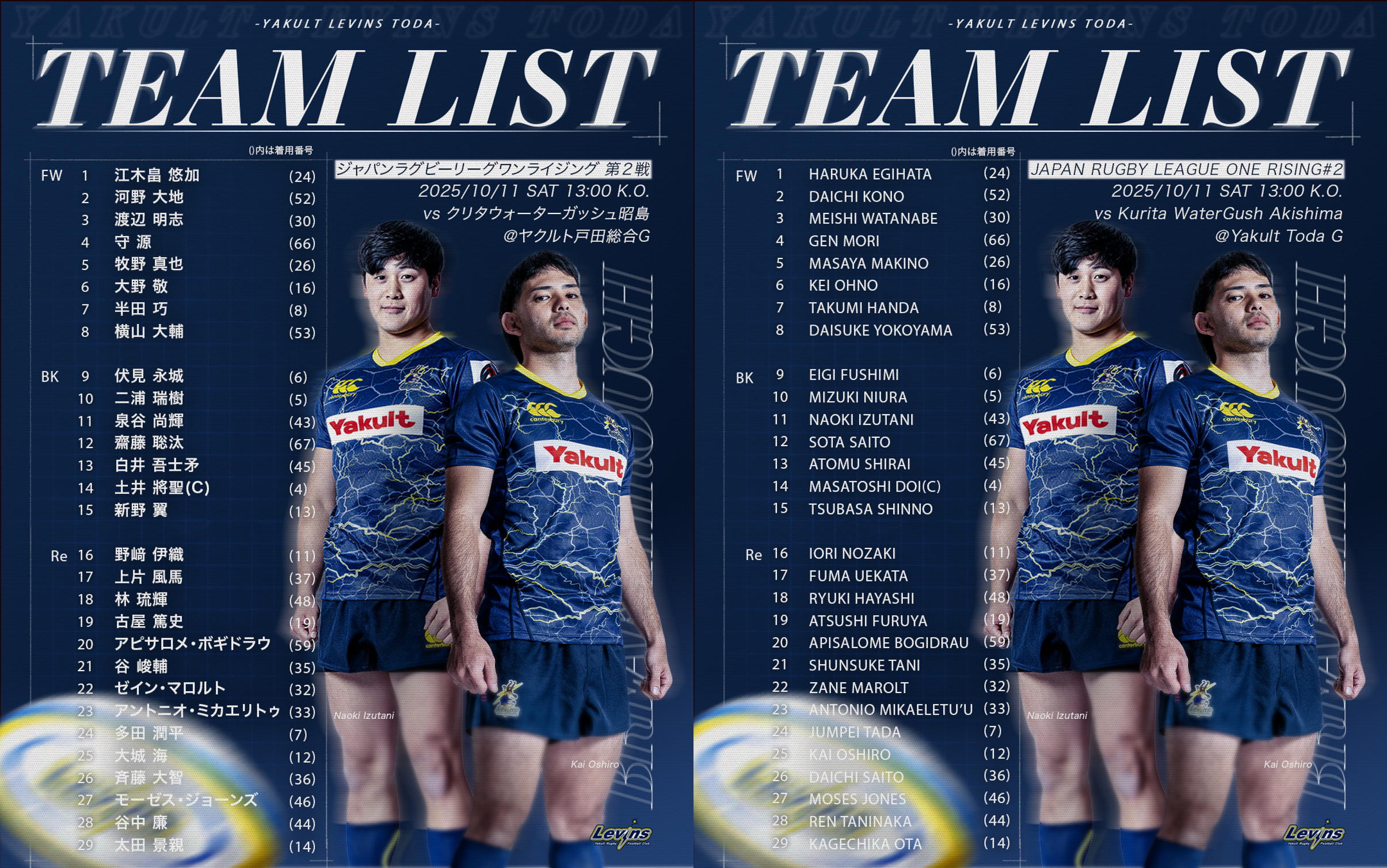 10月11日(土)13:00キックオフのジャパンラグビー リーグワン ライジング 2025 クリタウォーターガッシュ昭島戦出場メンバーおよび試合当日情報を案内します。